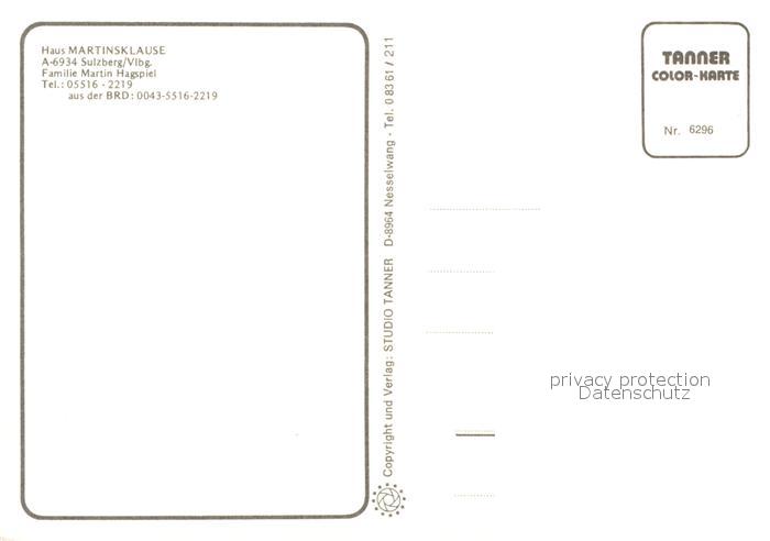 73175157 Sulzberg Vorarlberg Gaestehaus Pension Haus Martinsklause Alpenpanorama Fliegeraufnahme postalisch nicht gelaufen Erhaltung siehe scans [FriedD77] KatCode: 11390342080238