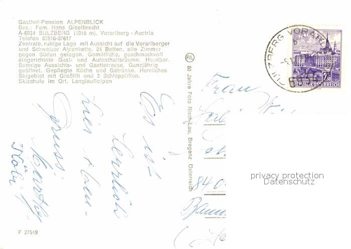 42623328 alte Postkarte Sulzberg Vorarlberg Gasthof Alpenblick Gaststube postalisch gelaufen Erhaltung siehe scans [WerneD78] KatCode: 11390342080238