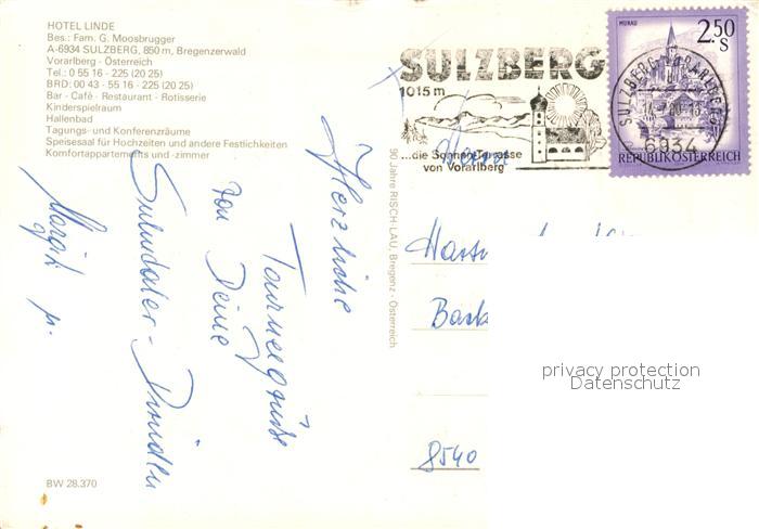 73203980 alte Postkarte Sulzberg Vorarlberg Hotel Linde postalisch gelaufen Erhaltung siehe scans [PaolaD17] KatCode: 11390342080238