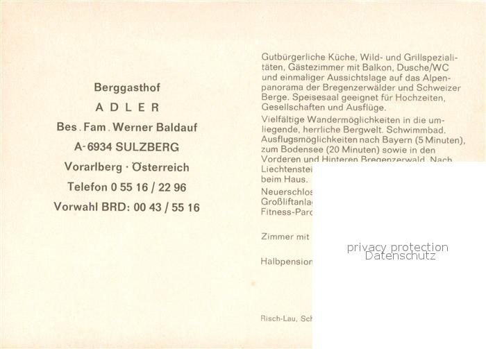 73721694 Sulzberg Vorarlberg Panorama Berggasthof Adler Gaststube Terrasse postalisch nicht gelaufen Werbekarte (keine Postkarte) Erhaltung siehe scans [WerneD78] KatCode: 11390342080238