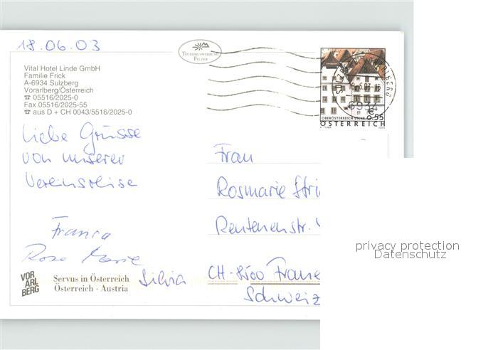 71850647 alte Postkarte Sulzberg Vorarlberg Vital Hotel Linde postalisch gelaufen Erhaltung siehe scans KatCode: 11390342080238
