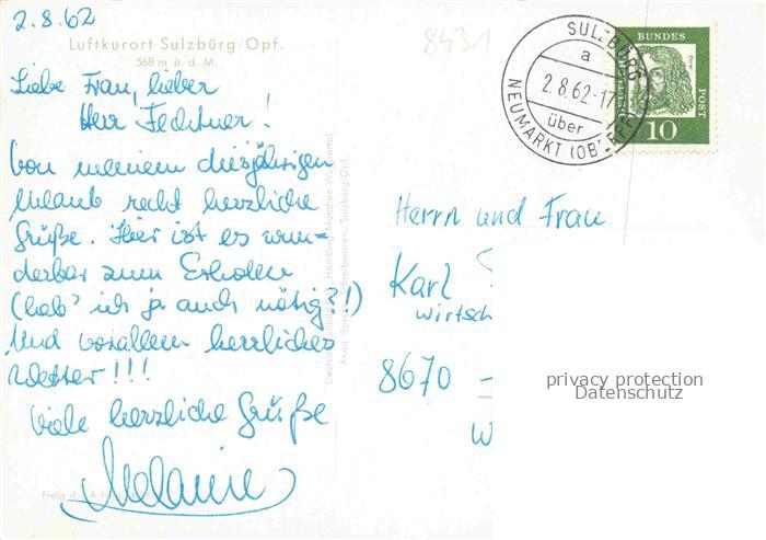 74049334 alte Postkarte Sulzbuerg Muehlhausen Bayern Panorama Luftkurort postalisch gelaufen Fliegeraufnahme Erhaltung siehe scans [FriedD77] KatCode: 11110009373146