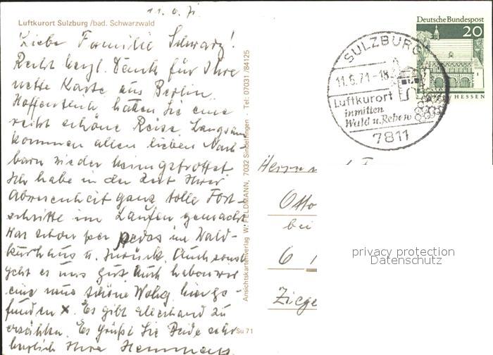 71830309 alte Postkarte Sulzburg postalisch gelaufen Erhaltung siehe scans KatCode: 11110009373146