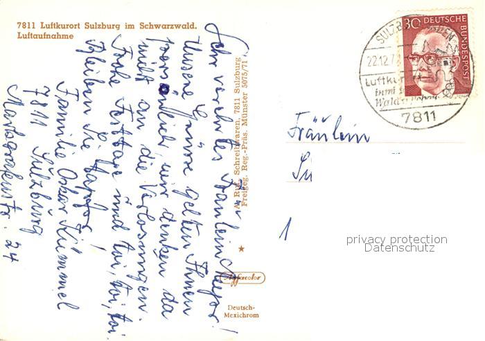 73192697 alte Postkarte Sulzburg Freiburg Fliegeraufnahme postalisch gelaufen Erhaltung siehe scans [NatalD47] KatCode: 11110008315111