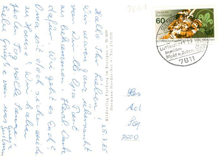 73929390 alte Postkarte Sulzburg Freiburg Marktplatz Panorama Kirche Stadttor Friedhofskapelle postalisch gelaufen Erhaltung siehe scans [FriedD77] KatCode: 11110008315111