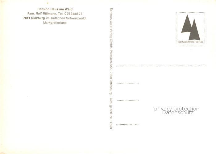 72946758 Sulzburg Freiburg Pension Haus am Wald postalisch nicht gelaufen Erhaltung siehe scans [KathaD81] KatCode: 11110008315111