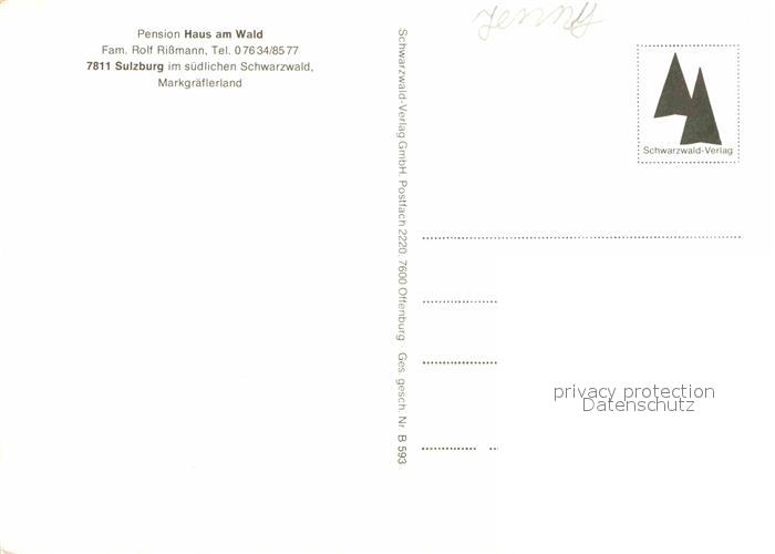 72730702 Sulzburg Freiburg Pension Haus am Wald postalisch nicht gelaufen Erhaltung siehe scans [AndreD76] KatCode: 11110008315111