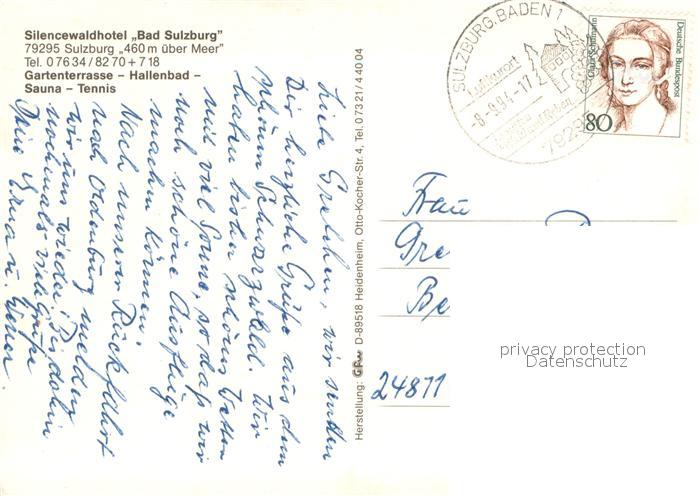 73655755 alte Postkarte Sulzburg Freiburg Silencewaldhotel Bad Sulzburg Gastraum Hallenbad postalisch gelaufen Erhaltung siehe scans [WerneD78] KatCode: 11110008315111