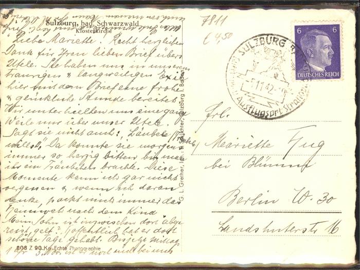 71444109 alte Postkarte Sulzburg Klosterkirche postalisch gelaufen Erhaltung siehe scans KatCode: 11110009373146