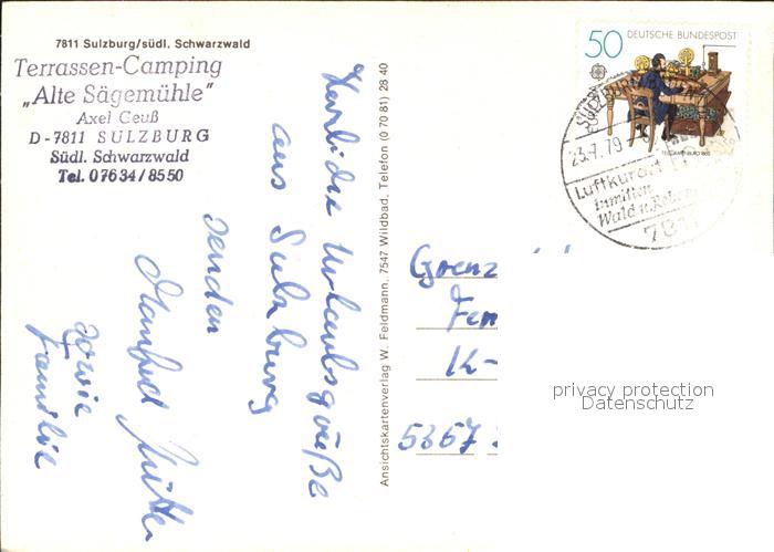 71905715 alte Postkarte Sulzburg Terrassencamping Alte Saegemuehle postalisch gelaufen Erhaltung siehe scans KatCode: 11110009373146
