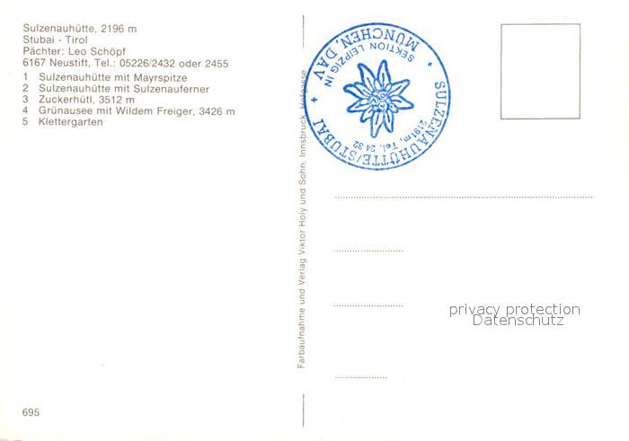 73204864 Sulzenauhuette Stubai Mayrspitze Sulzenauferner Zuckerhuetl Gruenausee postalisch nicht gelaufen Erhaltung siehe scans [PaolaD17] KatCode: 11390332070334