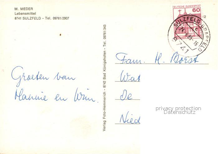 73670836 alte Postkarte Sulzfeld Grabfeld Teilansichten Strand Kirche Lebensmittelgeschaeft Meder postalisch gelaufen Erhaltung siehe scans [WerneD78] KatCode: 11110009673173