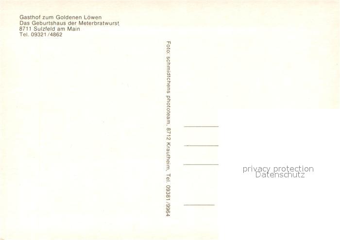 73654198 Sulzfeld Main Gasthof zum Goldenen Loewen Geburtshaus der Meterbratwurst postalisch nicht gelaufen Erhaltung siehe scans [FriedD77] KatCode: 11110009675170