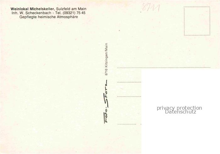 74054340 Sulzfeld Main Weinlokal Michelskeller postalisch nicht gelaufen Erhaltung siehe scans [WerneD78] KatCode: 11110009675170