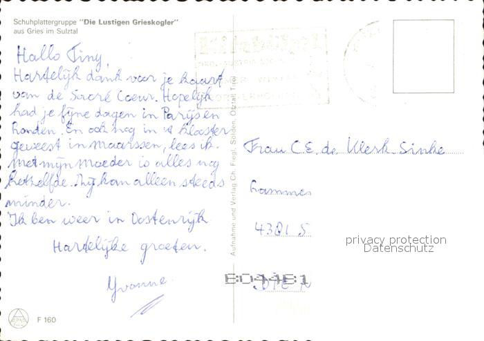72435058 alte Postkarte Sulztal Weinstrasse Die lustigen Grieskogler postalisch gelaufen Erhaltung siehe scans KatCode: 11390225061042