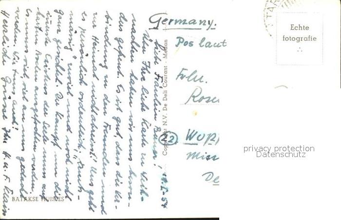 old postcard Sumatra Sumatera Batakse Huisjes postalisch gelaufen Erhaltung siehe scans