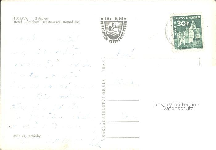 old postcard Sumava Czechia Babylon Hotel Cerchov postalisch gelaufen Erhaltung siehe scans