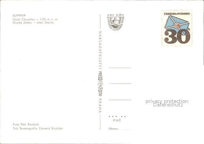 Sumava Czechia Hotel Churanov postalisch nicht gelaufen Erhaltung siehe scans