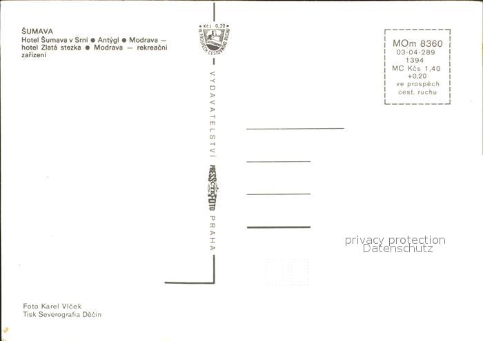 Sumava Czechia Hotel Sumava und Ziata Stezka postalisch nicht gelaufen Erhaltung siehe scans