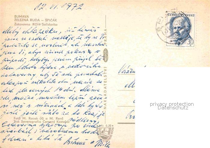 old postcard Sumava Czechia Spicak Zotavovna ROH Solidarita postalisch gelaufen Erhaltung siehe scans [LiesaD40]