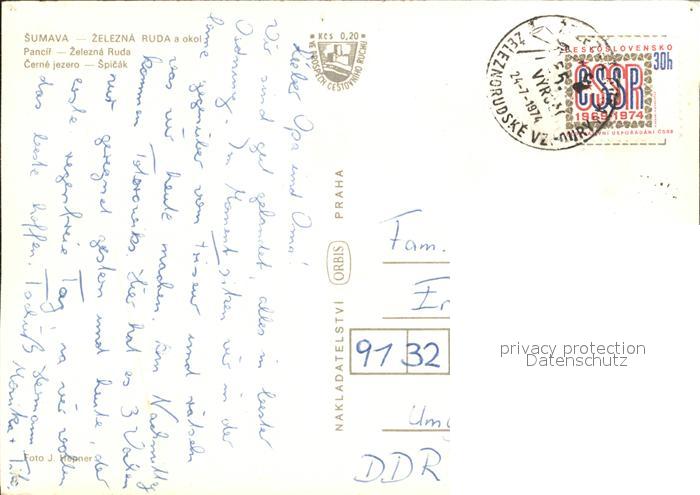old postcard Sumava Czechia Zelezna Ruda postalisch gelaufen Erhaltung siehe scans