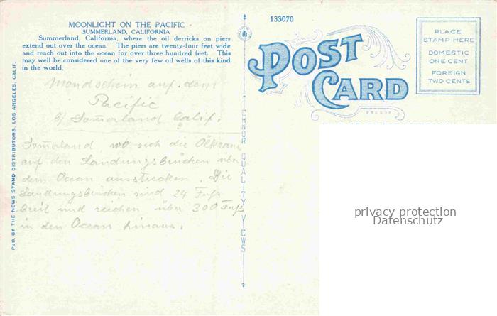 34143259 Summerland California USA Moonlight on the Pacific Fliegeraufnahme postalisch nicht gelaufen Erhaltung siehe scans [WerneD78] KatCode: 14140050000000