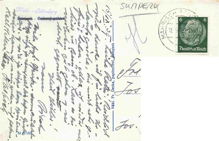 73974010 old postcard Sumperk Maehrisch Schoenberg CZ Panorama postalisch gelaufen Erhaltung siehe scans [WerneD78] KatCode: 11520