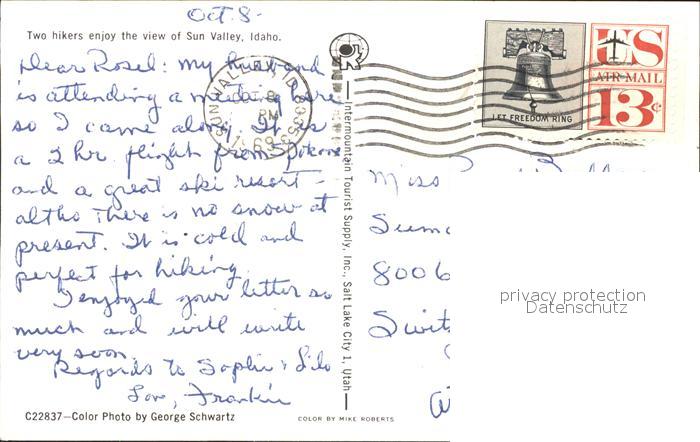 11712673 old postcard Sun Valley Idaho Bikers enjoy the panoramic view Mountains postalisch gelaufen Erhaltung siehe scans KatCode: 14140140000000