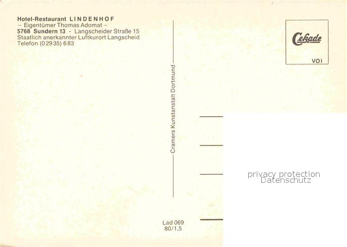 72728907 Sundern Sauerland Hotel Lindenhof Gastraum Speisesaal Garten postalisch nicht gelaufen Erhaltung siehe scans [AndreD76] KatCode: 11110005958044