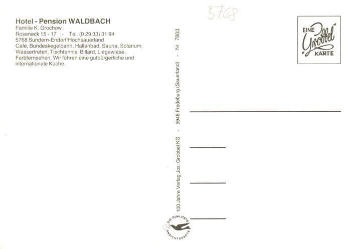 73912278 Sundern Sauerland Hotel Pension Waldbach Gastraeume postalisch nicht gelaufen Erhaltung siehe scans [WerneD78] KatCode: 11110005958044