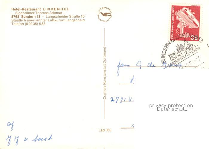 73087782 alte Postkarte Sundern Sauerland Hotel Restaurant Lindenhof postalisch gelaufen Erhaltung siehe scans [KathaD81] KatCode: 11110005958044