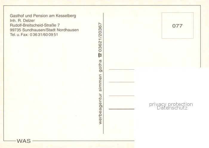 73662826 Sundhausen Nordhausen Gasthaus Pension am Kesselberg postalisch nicht gelaufen Erhaltung siehe scans [LiesaD40] KatCode: 11110016062041