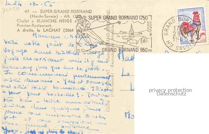 14104380 carte postale Super-Grand-Bornand Le 74 Haute-Savoie Chalet Blanche Neige Pension Restaurant Mt. le Lachat en hiver postalisch gelaufen Erhaltung siehe scans [FriedD77] KatCode: 11170074174136