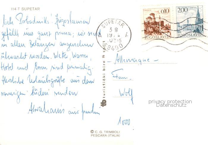 73849158 Supetar Croatia Hotels Jadran Fliegeraufnahme postalisch gelaufen Erhaltung siehe scans [WerneD78] old postcard Wern Katcode 11260