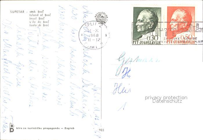old postcard Supetar Insel Brac Fliegeraufnahme postalisch gelaufen Erhaltung siehe scans