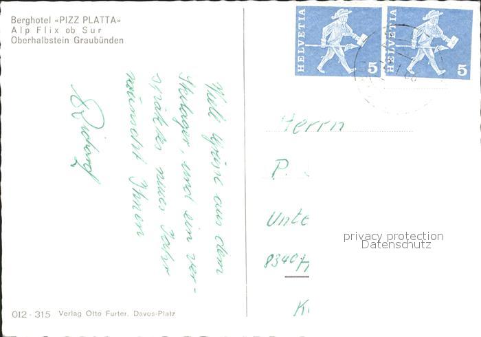 11649045 alte Postkarte Sur Albula Alp Flix Berghotel Pizz Platta postalisch gelaufen KatCode: 11470100305972