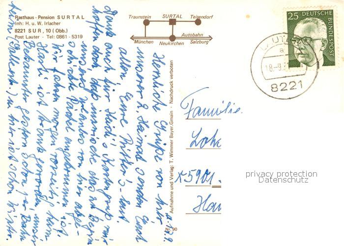 73608958 alte Postkarte Sur Oberbayern Rasthaus Pension Surtal postalisch gelaufen Erhaltung siehe scans [WerneD78] KatCode: 11110009189148