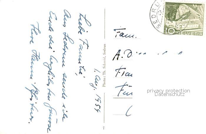 13822589 alte Postkarte Surrhein und Sedron mit Caschle und Piz Ner postalisch gelaufen Erhaltung siehe scans [FriedD77] KatCode: 11470100355512