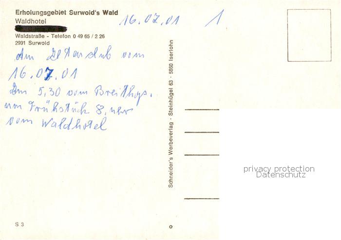 73846008 Surwold Waldhotel Cafe Restaurant Kurbetrieb postalisch nicht gelaufen Erhaltung siehe scans [FriedD77] KatCode: 11110003454051