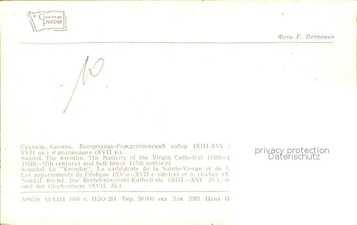 Susdal Kremlin Roshdestwenski-Kathedrale postalisch nicht gelaufen Erhaltung siehe scans