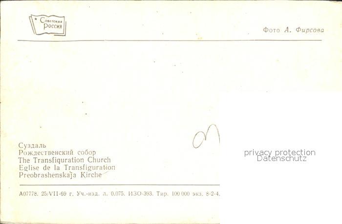 Susdal Preobrashenskaja Kirche postalisch nicht gelaufen Keine Postkarte (siehe scan) Erhaltung siehe scans