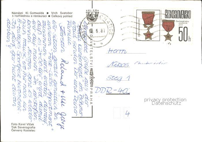 old postcard Susice Celkovy pohled Gottwalda postalisch gelaufen Erhaltung siehe scans