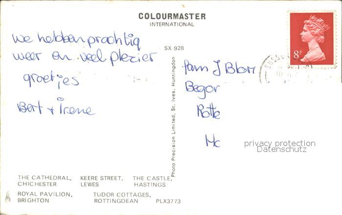 old postcard Sussex The Cathedral Chichester Keere Street The Caste Hastings Royal Pavilion Brighton Tudor Cottages postalisch gelaufen Erhaltung siehe scans