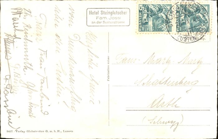 10724078 alte Postkarte Susten Hotel Steingletscher postalisch gelaufen KatCode: