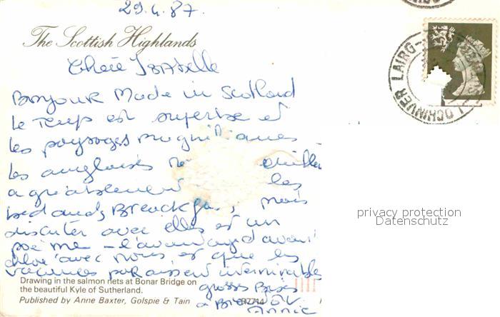 old postcard Sutherland Caithness & Sutherland Bonar Bridge Salmon nets postalisch gelaufen Erhaltung siehe scans [LiesaD40]