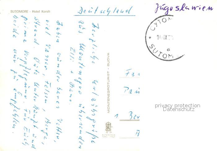 old postcard Sutomore Dalmatien Hotel Korali postalisch gelaufen Erhaltung siehe scans [KathaD81]