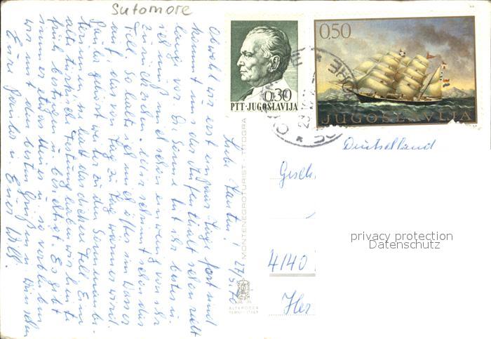 old postcard Sutomore Dalmatien Stadtansichten Nachtaufnahme postalisch gelaufen Erhaltung siehe scans
