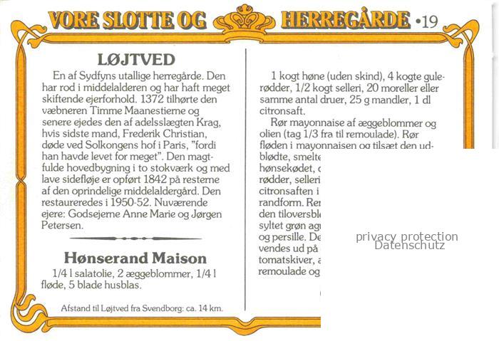 74040350 Svendborg DK Vore Slotte OG Herregarde Lojtved Schloss postalisch nicht gelaufen Sammelbild (keine Postkarte) Erhaltung siehe scans [FriedD77] KatCode: 11100