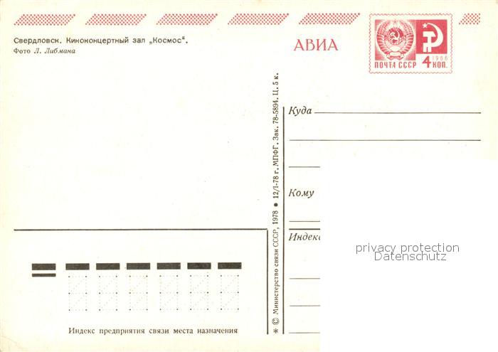 73595989 Sverdlowsk Russia Kino Kosmos postalisch nicht gelaufen Erhaltung siehe scans [Darjalle] KatCode: 14140370000000