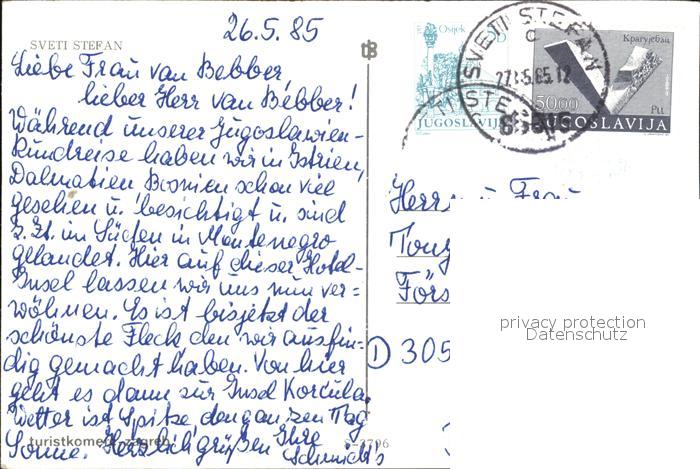 old postcard Sveti Stefan postalisch gelaufen Erhaltung siehe scans